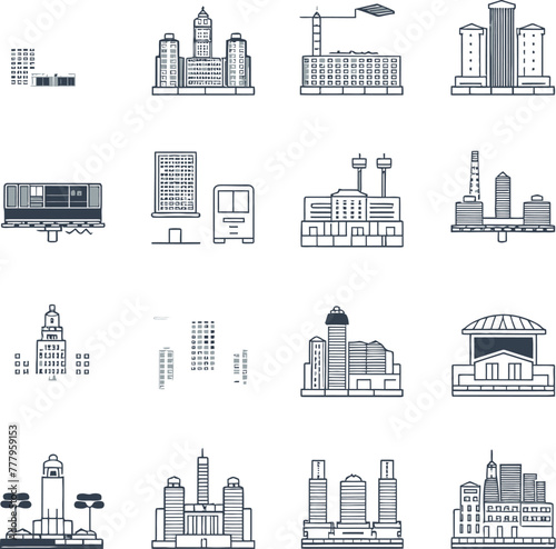 A digital drawing icons set of urban life and city landscapes. AI generative.