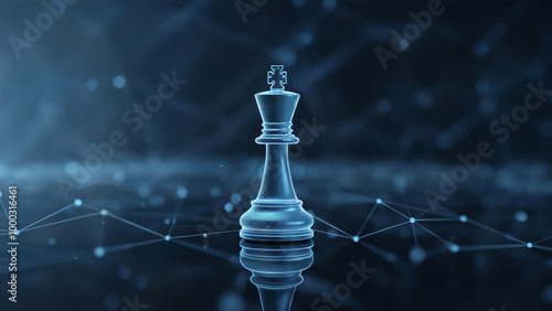 A digital representation of a king chess piece, illuminated in a blue hue.