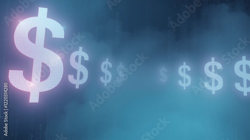 A digital representation of floating dollar signs in a misty atmosphere, emphasizing finance and wealth.