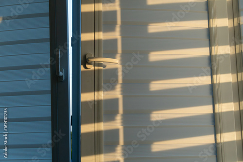 door, shadow, light, interior, design, morning, sunlight, pattern, modern, opening, architecture, line, hue, ambience, home, space, reflections, brightness, angle, texture, privacy, warmth, environment, style, arrangement, view, barrier, material, aesthetic, entrance, simplicity, contrast, outdoors, daylight, calm, sharpened, shape, art, visual, element, perspective, serene, comforting, decor, structure, separation, generative, ai