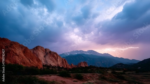 lightning, strike, mountain, rock, formation, stormy, twilight, sky, nature, landscape, mountain, formation, geology, storm, weather, cloud, dramatic, electric, power, energy, peak, summit, range, ridge, silhouette, dusk, dawn, natural, wild, scenic, view, panorama, vista, erosion, ancient, rugged, textured, red, orange, purple, blue, white, dark, contrast, light, bright, flash, atmospheric