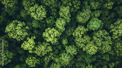 A drone-shot top view of a rich, green forest. The lush canopy symbolizes carbon sequestration, net-zero emissions, and environmental sustainability