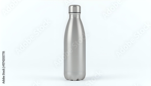 A durable, reusable water bottle, metallic finish, on a white background