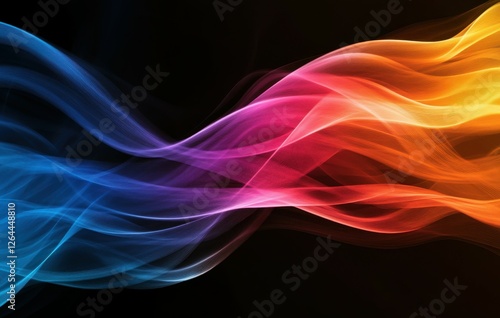 A dynamic abstract design featuring colorful waves of light and dark hues intertwined in elegant patterns