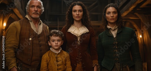 family, portrait, generation, oneness, historical, attire, strength, togetherness, heritage, bequest, ancestry, culture, era, connection, emotion, storytelling, tradition, character, narrative, expression, relationship, authenticity, scene, atmosphere, intimacy, craftsmanship, elegance, fashion, art, dynamic, bond, love, value, time, root, journey, memory, lighting, environment, warmth, exploration, growth, depth, joy, resilience, identity, moment, significance, life events
