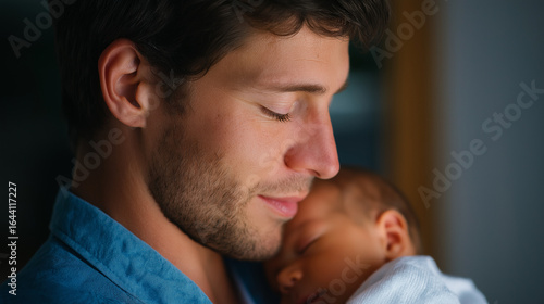 A father shares a tender moment with his newborn baby in love