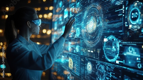 futuristic, technology, science, digital, screen, datum, interface, display, research, innovation, laboratory, scientist, woman, future, virtual, reality, hologram, progress, concept, modern, abstract, network, information, analysis, control, touch, interaction, development, experiment, exploration, discovery, cognition, intelligence, artificial intelligence, dashboard, visualisation, graphic, coding, programming