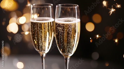A festive celebratory image with champagne flutes and sparkles in the background.