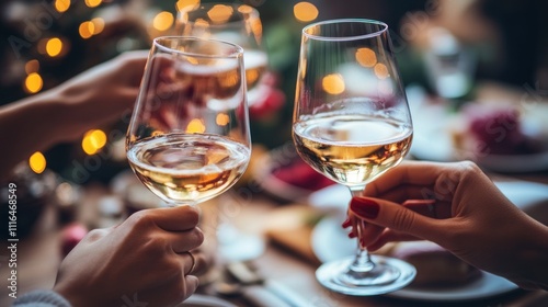 toast, celebration, wine, goggles, cheer, friends, gathering, holiday, meal, joy, warmth, dining, atmosphere, clinking, food, table, decor, light, festive, enjoyment, togetherness, happiness, party, ambience, laughter, socialising, beverage, white, sparkling, elegance, cookery, plate, colours, red, green, seasonal, memory, sharing, moment, hospitality, tradition, cheerfulness, event, clink, refreshment, joyfulness, company