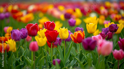 A field of tulips in various shades, creating a mesmerizing carpet of color in April