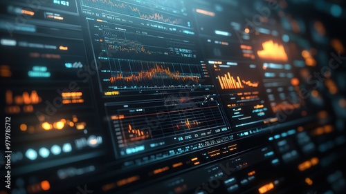 A financial market analysis dashboard, showcasing digital finance and data visualization with modern technology.