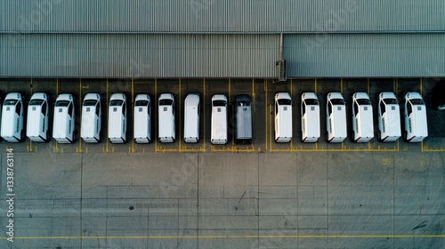 fleet, vans, parked, row, warehouse, branding, vehicle, transportation, logistic, car park, delivery, service, organisation, shipping, distribution
