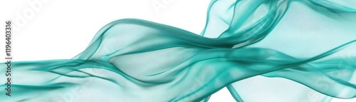 A flowing, translucent fabric in shades of teal, creating an ethereal and calming visual effect against a white background.