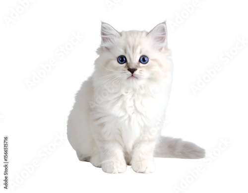 kitten, fluffy, blue, eye, curious, cat, felino, pet, animal, young, white, adorable, cute, sweet, charming, mammal, domestic, furry, soft, fur, sitting, looking, gaze, attentive, gentle, innocent, small, tiny, purebred, ragdoll, siberian, norwegian, whisker, nose, paw, tail, ear, head, portrait, studio, companion, friends, playful, beautiful, creature
