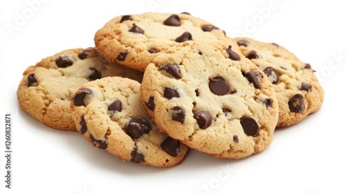 A fresh batch of cookies, including chocolate chip and sugar cookies, displayed against a clean white backdrop with subtle shadows for depth.