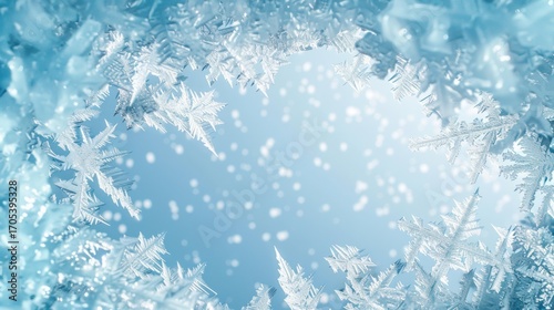 A frozen wonderland of delicate snowflakes and frosty patterns creating an icy frame