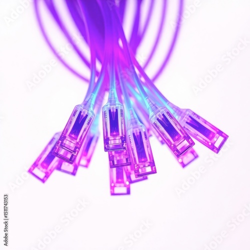 A futuristic bundle of glowing fiber optic cables