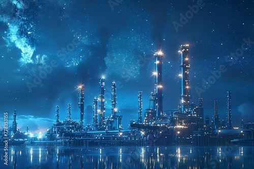 futuristic, oil, refinery, distant, planet, pipeline, tower, starry, sky, science fiction, barrel, gear, alien, process, fi, flare, gauge, machine, valva, drone, rig, drill