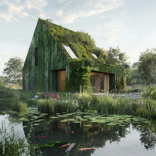 A garden house with a coffee shop and a koi pond.