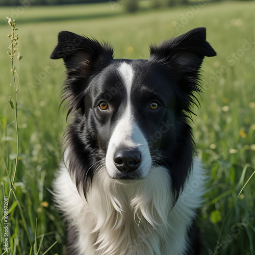 black, field, sitting, white, dog, pet, animal, companion, friends, domestic, outdoors, nature, green, grass, summer, sunny, calm, peaceful, serene, loyal, purebred, mutt, rescue, border, collie, husky, dalmatian, great, dane, breed, fur, fluffy, cosy, comfort, sweet, innocence, joy, border collie, canino, cute, sheepdog, portrait, puppy, shetland sheepdog, mammal, shetland, pedigree, isolated, happy