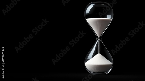 hourglass, glasses, bulbous, black, background, chamber, white, substance, bottom, classic, clear, body, granular, pointing, striking, contrast, top