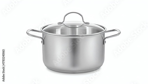 pot, cookware, kitchen utensile, stainless steel, metal, silver, chrome, lid, handle, cooking, food preparation, kitchen, home cooking, culinary, eatery, heavy duty, hard-wearing, shiny, reflective, smooth, modern, sleek, appliance, utensil, equipment, round, cylindrical, tall, deep, large, capacity, soup, stew, broth, boiling, simmering, sauce, pasta, vegetable, gastronomy