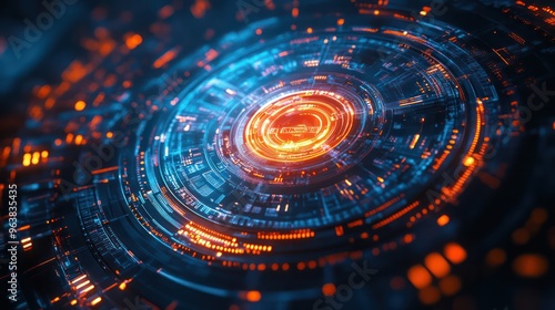 glowing, colourful, circle, blue, center, orange, edge, surrounded, lot, small, bright, dot, digital, technology, network, concept, science, future, communication, abstract, connect, background, computer, futuristic, cyberspace, illustration, web, innovation, information, graphic, tech, system, circuit, light, electronic, cyberspace, cyber, energy, datum, line, design, business, virtual, modern, security, engineering, creative, wallpaper, grid