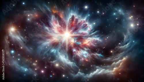 A glowing nebula amidst a field of stars. Space nebula stars supernova cosmic space scene with a vibrant supernova explosion. Mystical landscape of space with stars and nebula. Cosmic space.
