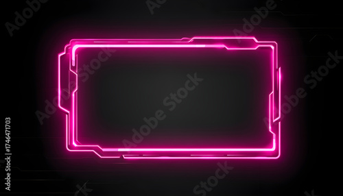A glowing neon frame on black is a blank vector rectangle illustration for a web design template or screen element