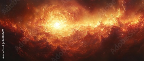 space, nebula, orange, star, galaxy, cosmic, celestial, bright, glowing, swirling, fiery, red, light, dust, gas, cloud, universe, astronomic, abstract, art, artwork, digital, background, wallpaper, illustration, fantasy, imagination, beauty, wonder, immensity, forever, fire, flames, smoke, texture, cloud, heat, burning, explosion, sun, yellow, dark, motion, sky, design, glow, energy, loop
