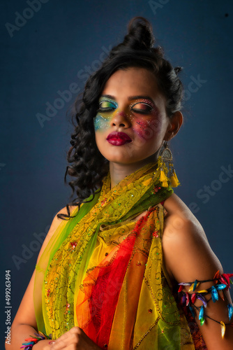 A gorgeous Young model beautiful woman or girl with perfect art creative makeup like a butterfly.