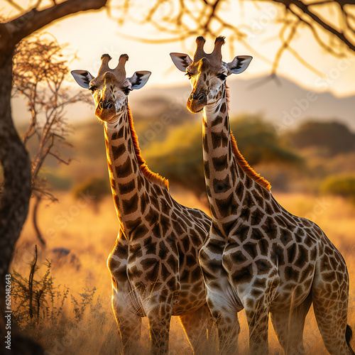 A Graceful Bond: Mesmerizing Shot of a Couple of Giraffes - Discover Adobe Stock's Wildlife Collection