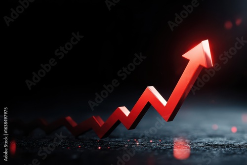 A graph with a red upward arrow indicates growth or positive trends on a dark background, symbolizing financial success or market performance.