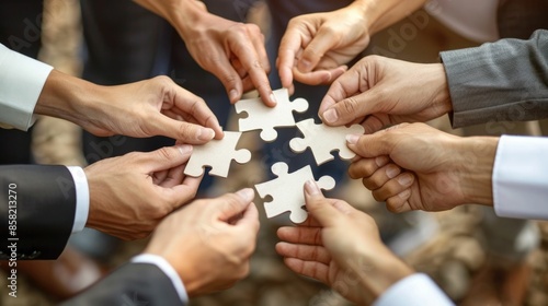 A group of Asian business professionals working together as a team to brainstorm and solve a problem or challenge they are facing in their corporate or organizational setting