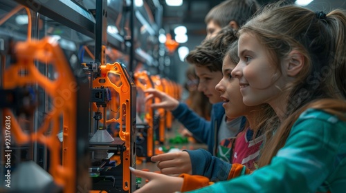 A group of children excitedly choose archery equipment at a sporting goods store.