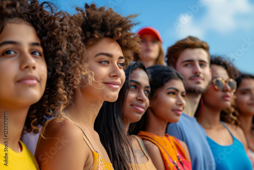 A group of happy multi ethnic young people standing together in the outdoor