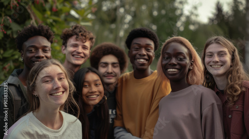 friends, group, diverse, smile, joy, greenery, togetherness, happiness, nature, bonding, portrait, people, youth, oneness, multicultural, fresh air, leisure, camaraderie, laughter, connection, fun, beautiful day, together, team, diversity, cheerful, community, summer, casual attire, life, friendship, posing, radiant, young, energy, warm, gathering, relationship, emotion, tree, group picture, foliage