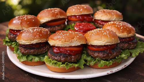 menu, indoor, fast, junk, meat, tomatoes, lunch, lettuce, hamburger, platter, cheeseburger, cheddar, snack, grilled, sandwich, mini, beef, set, burger, cafes, plate, bar-b-q, bread, epicure, bun, cheese, dish, meal, patty, slider