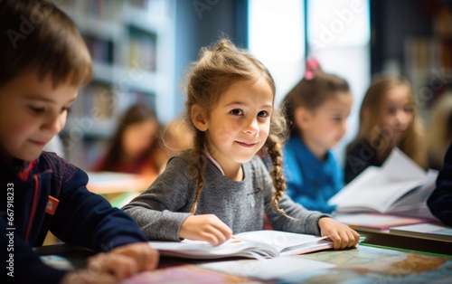 group, school, boy, girl, children, study, classroom, education, student, elementary, primary, grade, preschool, learning, people, back, to, childhood, smiling, studying, college, looking, together, exam, test, desk, to sit, write, room, writing, sitting, class, diversity, equality, multicultural, fair, book, paper, pen, modern, european, ai, generative, children, lesson, pupil, reading