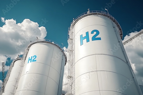 chemical, concept, gas, horizontal, idea, hydrogen, sky, symbol, clean, blue, plant, environment, cloud, facility, futuristic, large, letter, production, seating, structure, sustainable, daylight, energy, environmentally, industrial, pipe, tank, industry, surrounding, technology, white, area, cylindrical, equipment, green, leaf, low angle, background, industrial area, earth, fuel, generator, half, innovation, oil, panel, planet, power