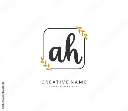 A H AH Initial letter handwriting and signature logo. A concept handwriting initial logo with template element.