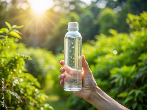 A hand cradles a clear bottle filled with micellar water, a gentle solution for removing makeup and cleansing