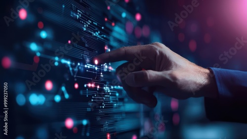 A hand interacting with a digital interface, showcasing innovation and technology in a modern environment.