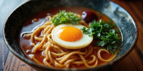 A Hearty Bowl Of Ramen With Rich Broth, Soft-Boiled Egg, And Noodles