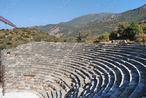 A Hellenic amphitheater from 1st Century BC with the capacity of 4000 spectators which is located in Kaş, a seaside town on the Mediterranean coast in southwestern Turkey.