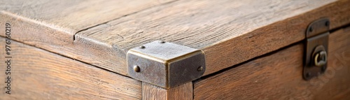 A heritage oak chest with brass fittings, representing old-world craftsmanship and family legacy, oak furniture, wood heritage