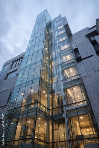 A high rise private hospital tower. Glass elevators rise along the side. The mood feels modern and prestigious, Generative AI