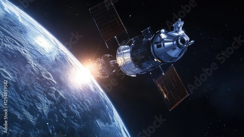 A high-resolution 3D render of an astronaut performing a spacewalk near a shimmering satellite.