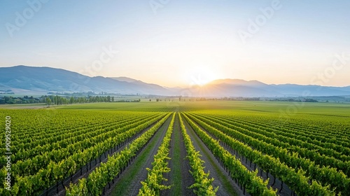 A high-resolution aerial photo of a picturesque vineyard, clean and scenic.