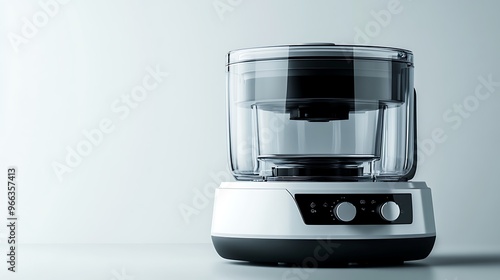 A high-tech food processor with a transparent bowl and digital controls